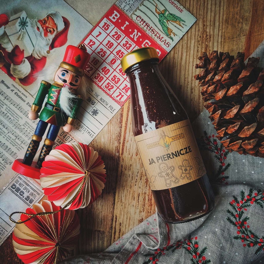 Syrop Ja Pierniczę powstał na bazie autorskiej mieszanki piernikowej, dzięki czemu zachwyca intensywnym aromatem kakao, cynamonu i przypraw korzennych.